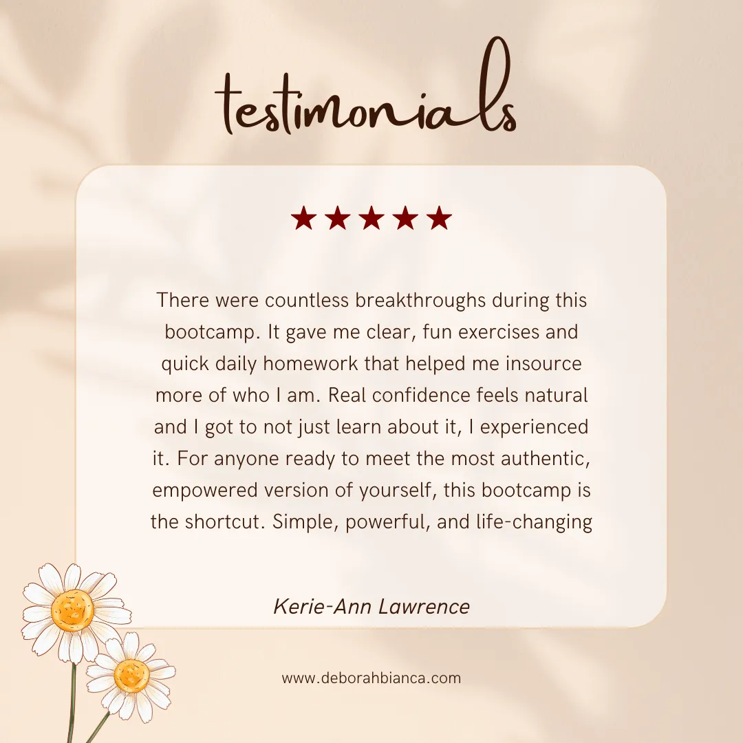 You'll have seven live workshops, community support, and all the tools you need to build your roadmap to freedom. In Week 8, you'll book your private 1.5-hour one-on-one coaching session, your space to go deep on your specific fears, goals, and strategic plan with personalised guidance.